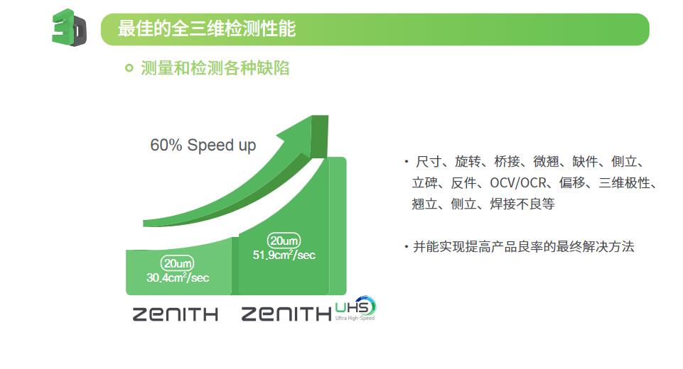 KOH YOUNG TECHNOLOGY Zenith UHS 高速全3D AOI,帶來 SMT 工藝管理的革命 行業(yè)領(lǐng)先的全三維測量檢測設(shè)備技術(shù)解決方案 - 業(yè)界唯一既符合 IPC-610 標(biāo)準(zhǔn)又具備直觀編程的檢測標(biāo)準(zhǔn)設(shè)置 - 通過基于測量的數(shù)據(jù)執(zhí)行缺陷診斷,并消除可能出現(xiàn)錯誤的原因 - 完美的三維焊點(diǎn)檢測 基于全三維數(shù)據(jù)的工藝優(yōu)化解決方案:實(shí)現(xiàn)工業(yè) 4.0 /智能工廠 適用于各種生產(chǎn)環(huán)境的最佳規(guī)格典范