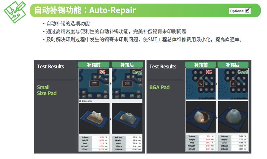 - 提供帶實時 PCB變形補償的精確檢測數據